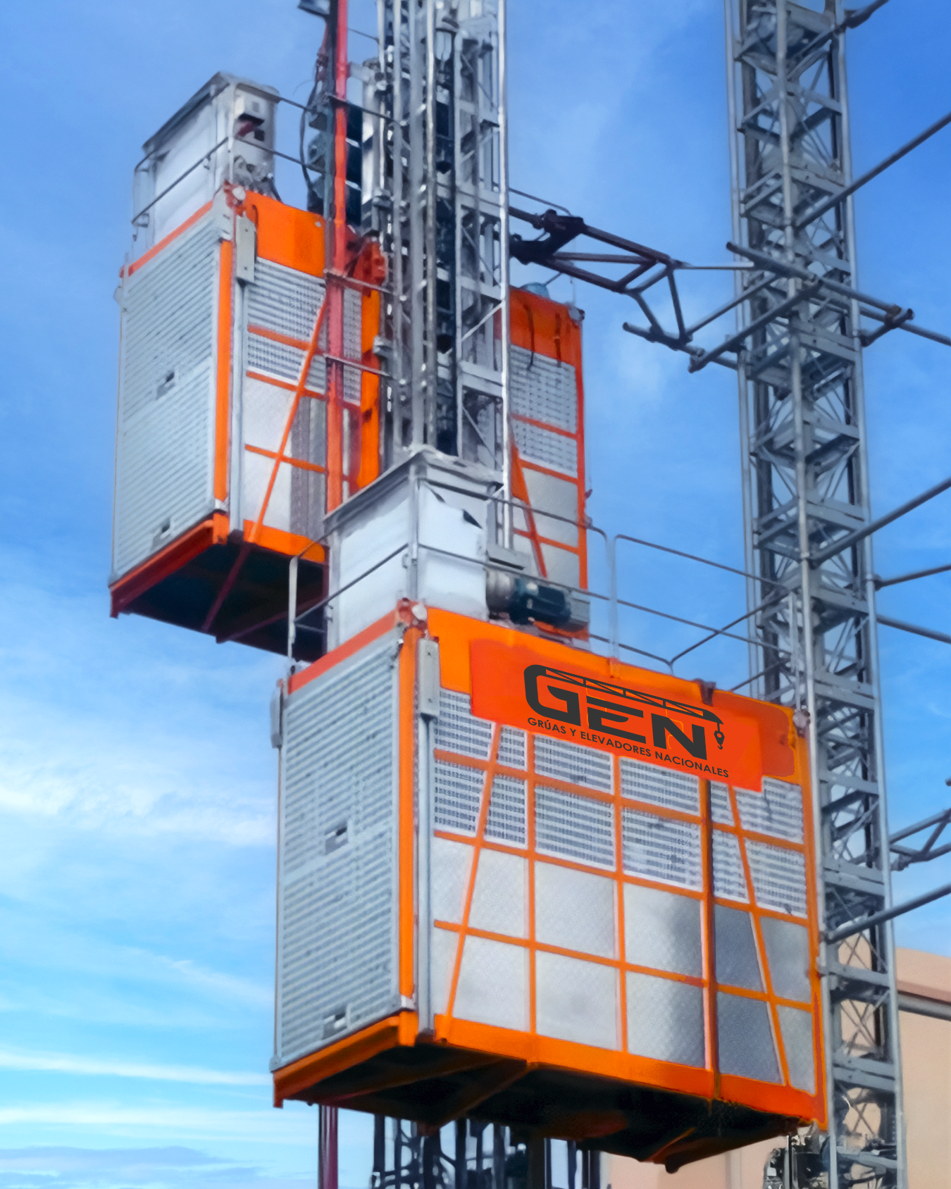 Ideal para obras donde no se tiene tanto espacio para montar un elevador doble o la carga de trabajo es baja.